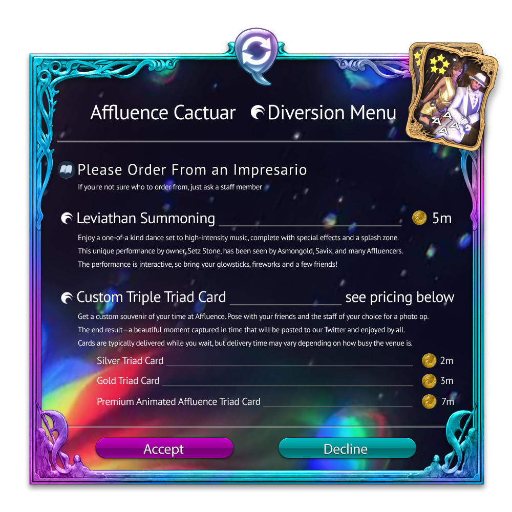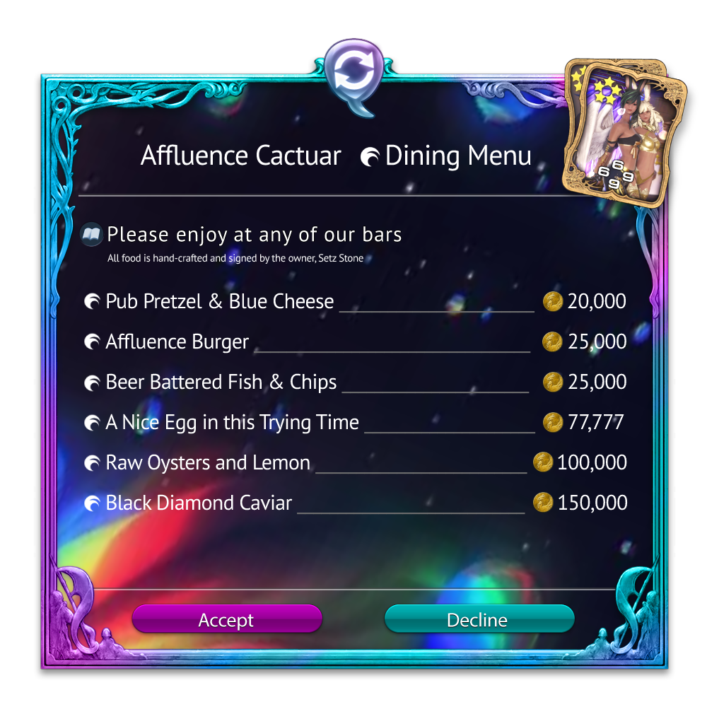 Greetings! I am Setz, the creator of Affluence Cactuar. I hope you will find your time at Affluence to be an experience like no other! Please join our Discord and follow me on Twitter for updates!
